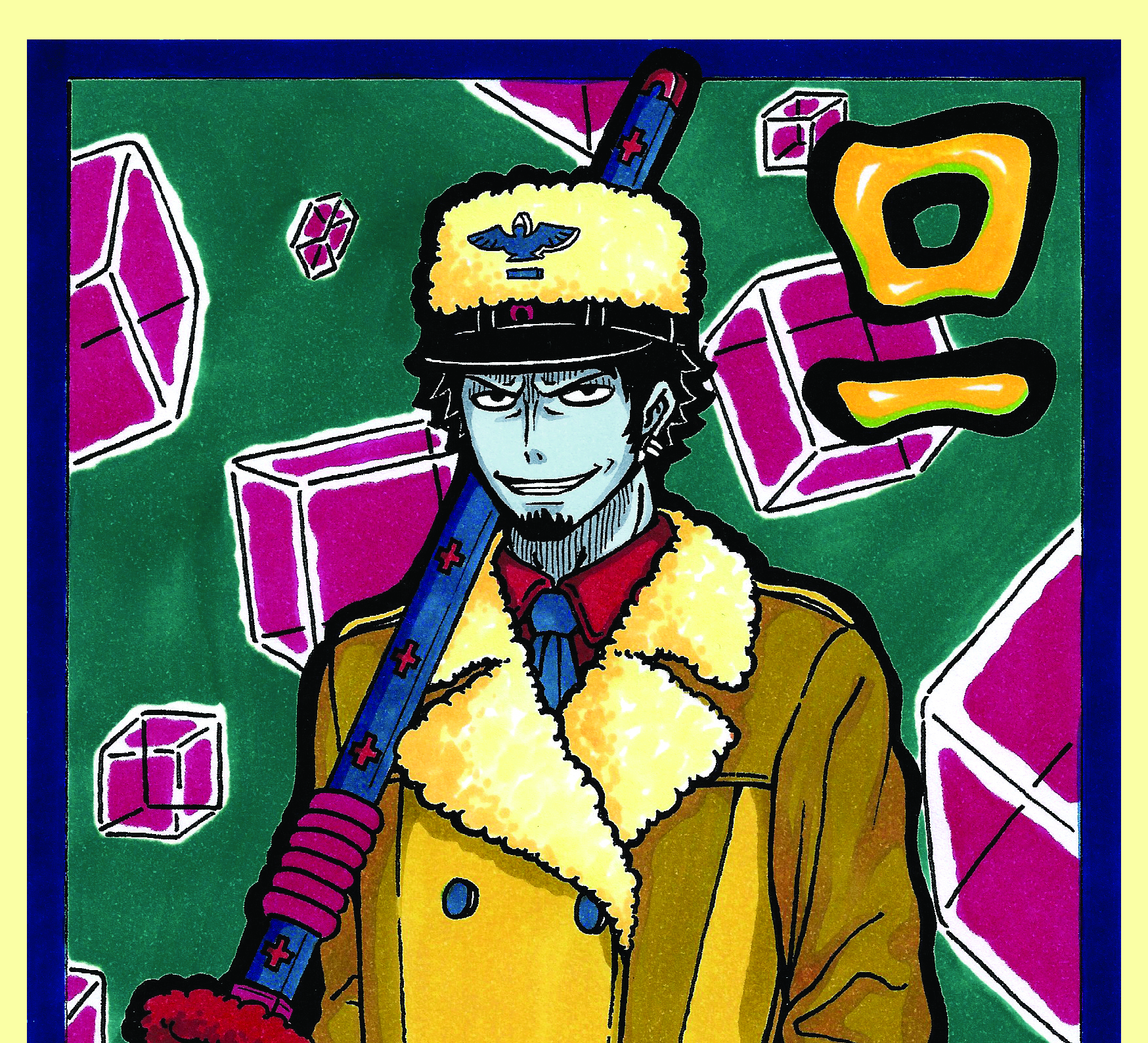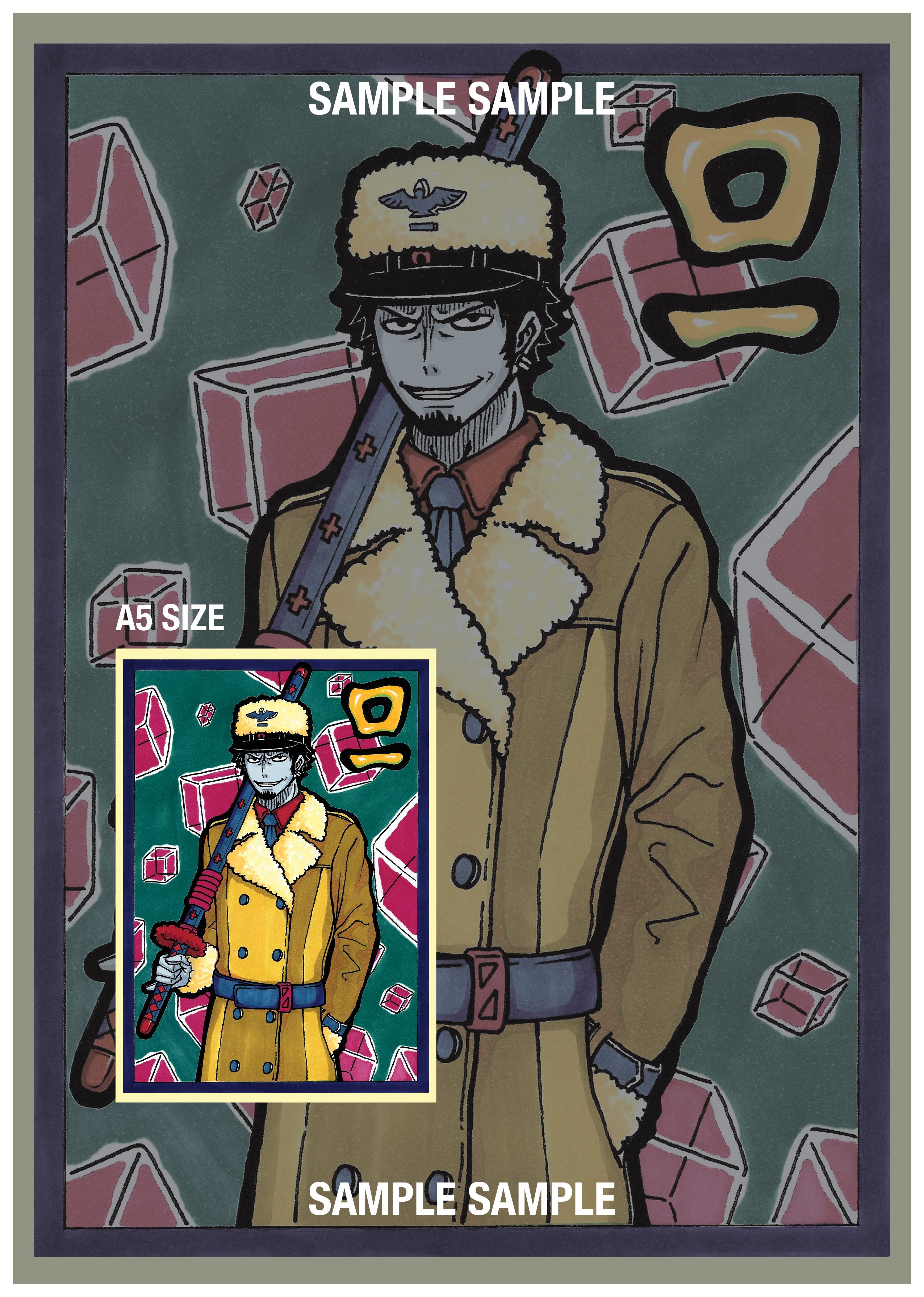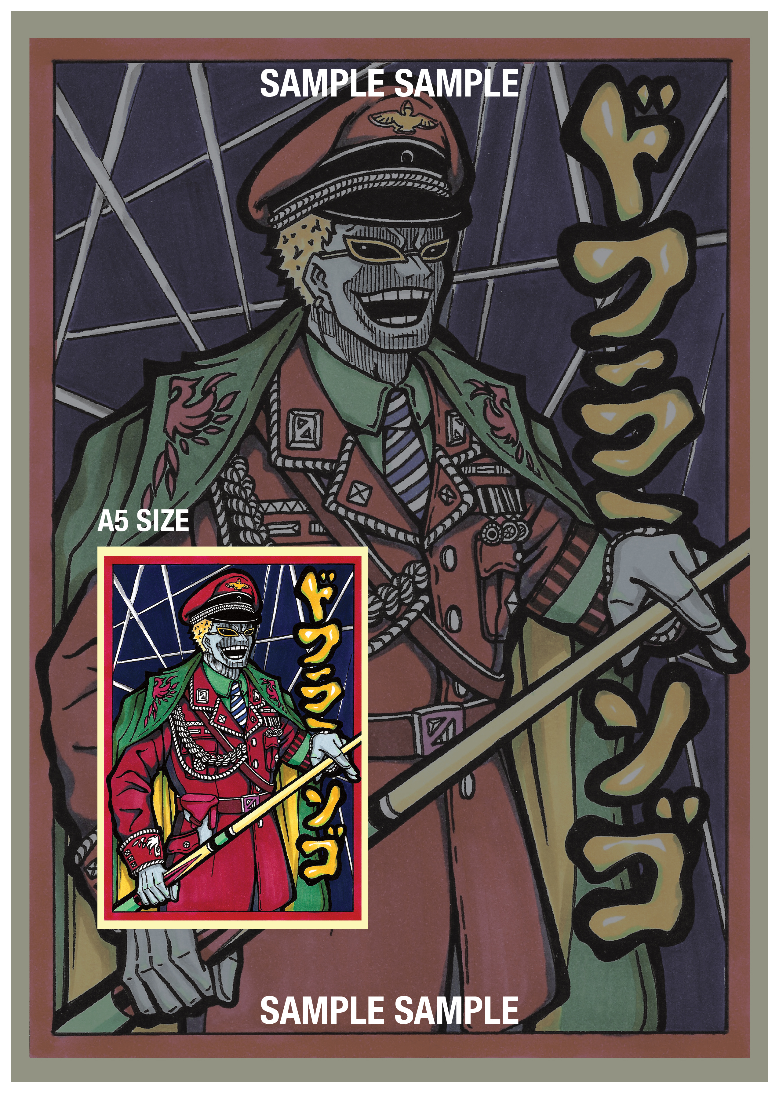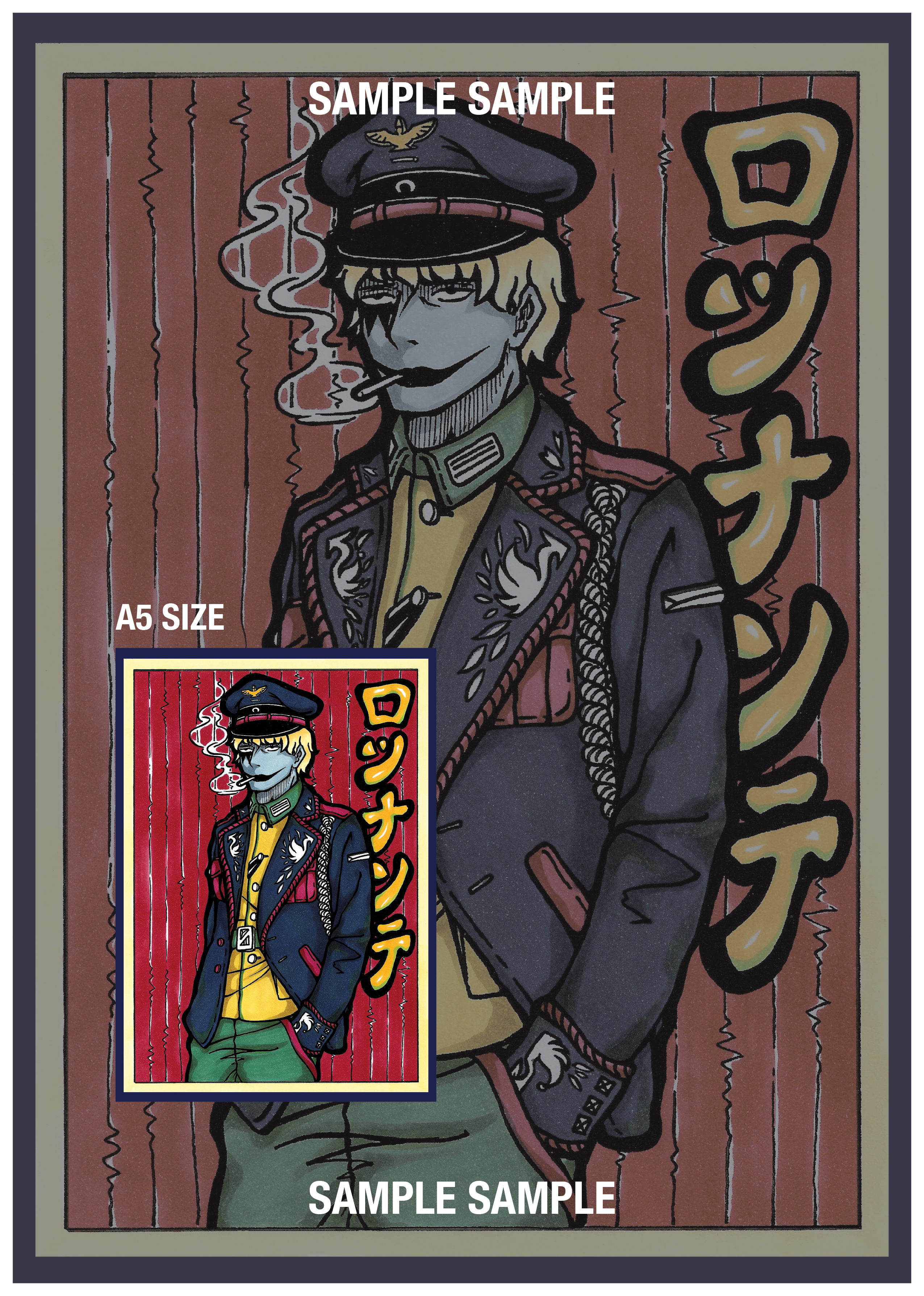 手繪原稿印刷的硬卡角色卡,尺寸為 A5,單面印刷