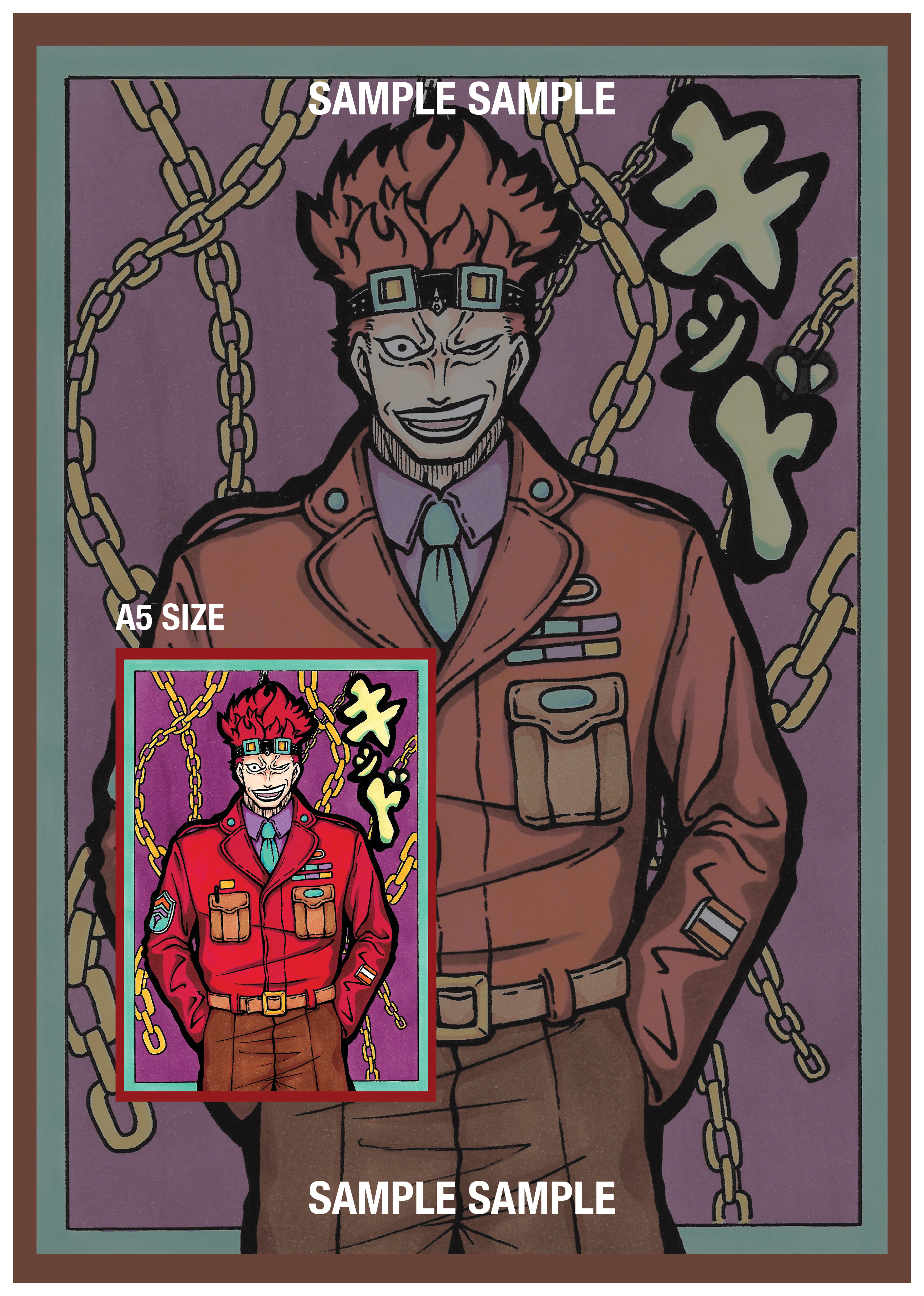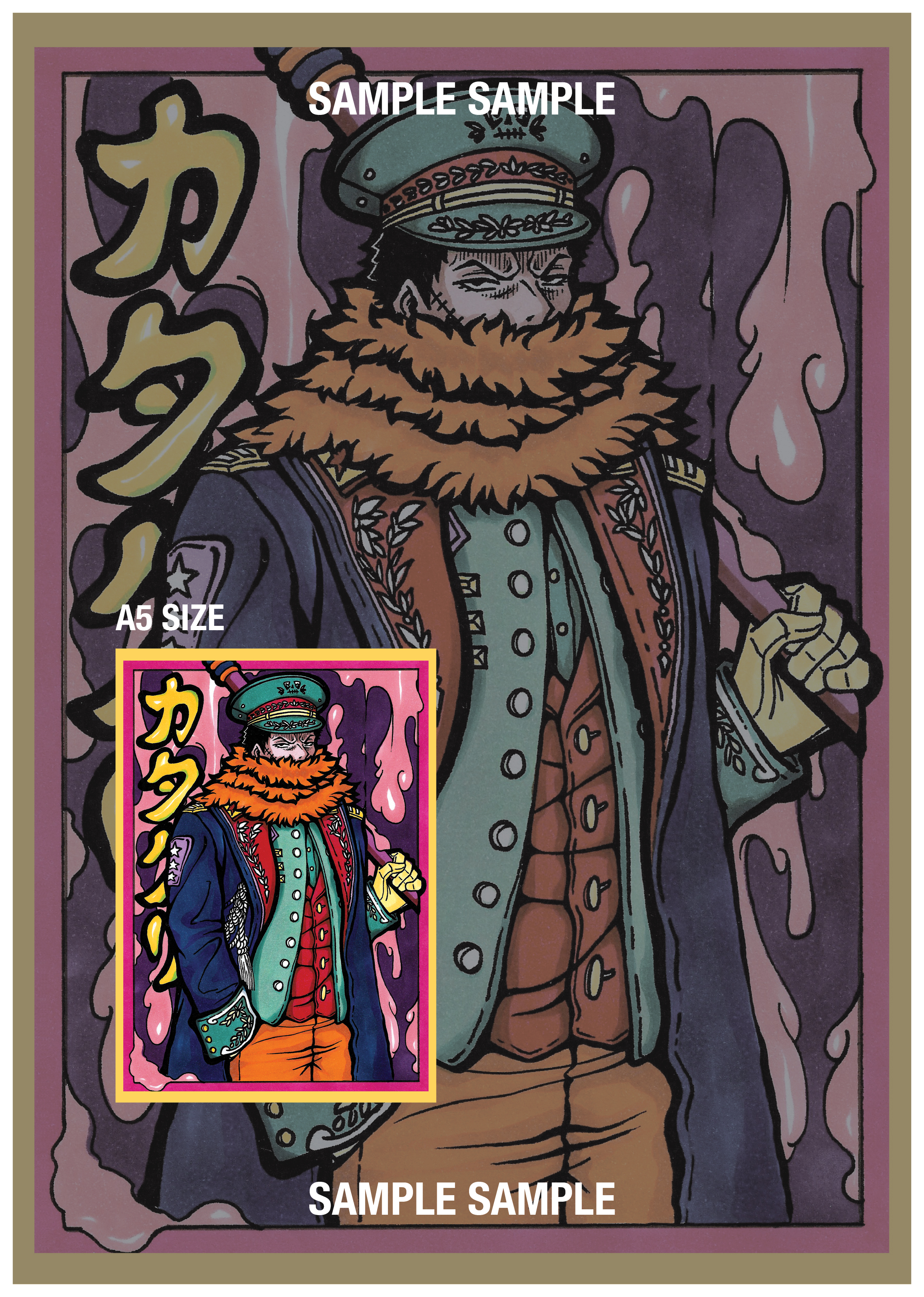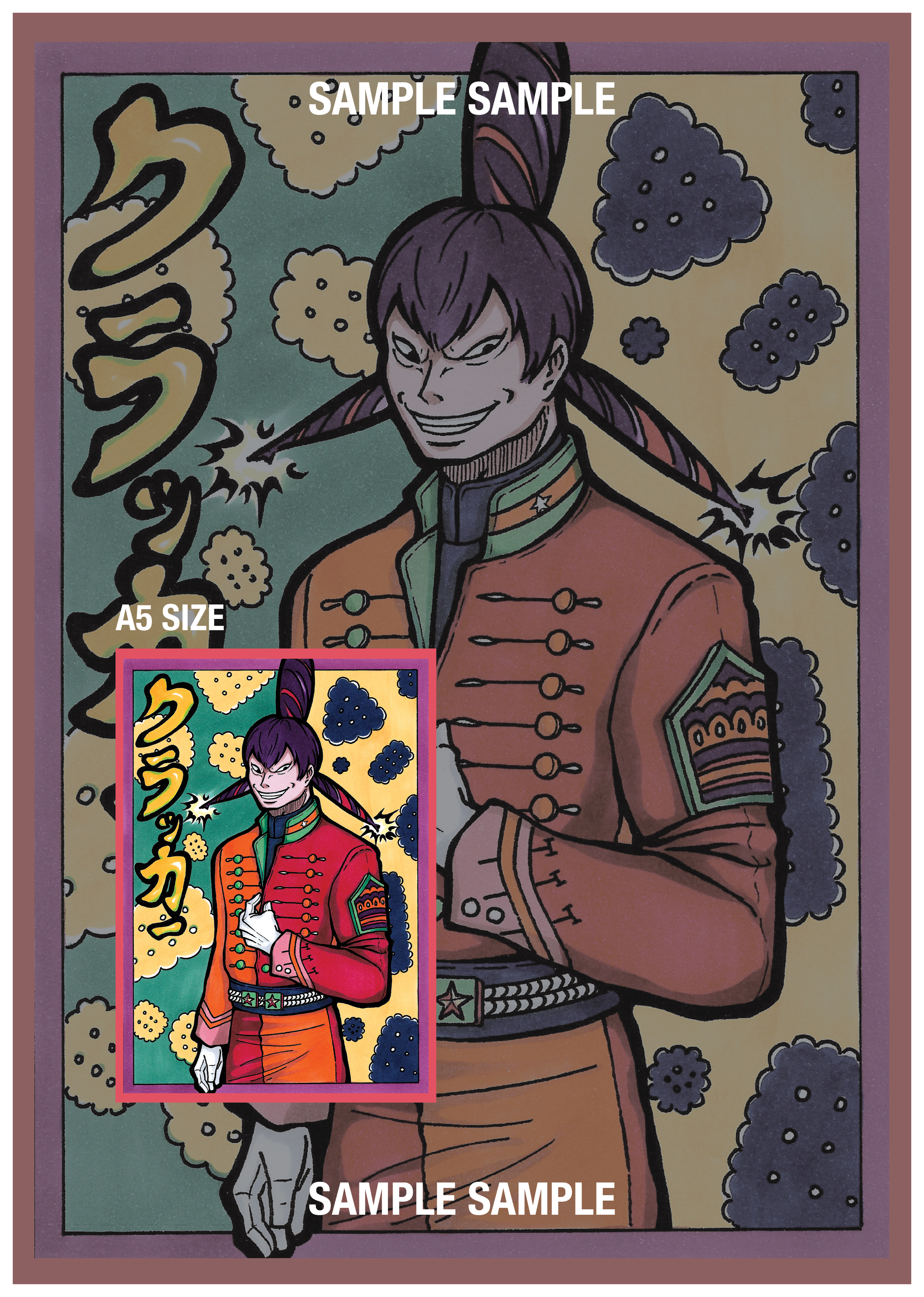 手繪原稿印刷的硬卡角色卡,尺寸為 A5,單面印刷