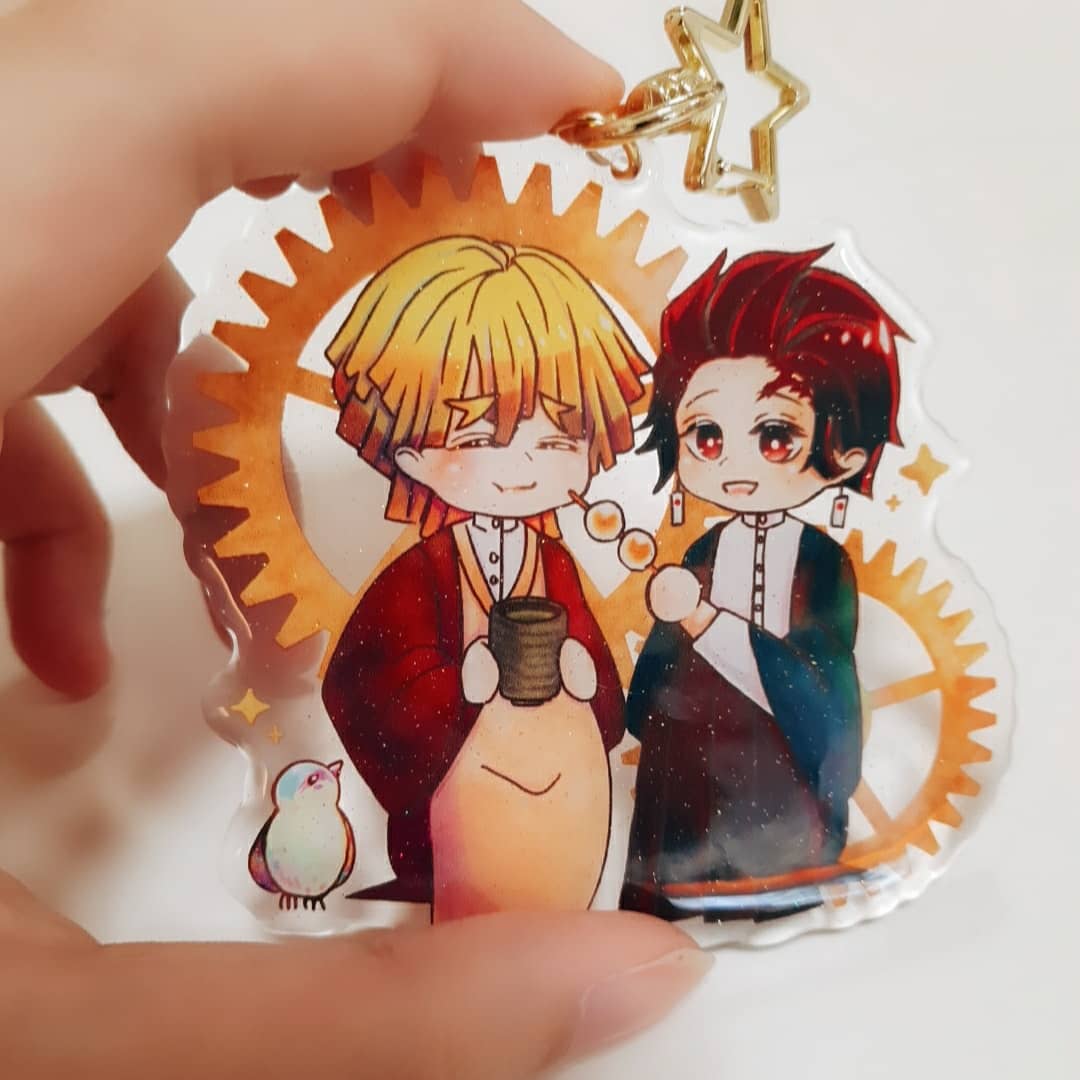 是鬼滅cp的壓克力!這次的壓克力有閃粉,在陽光下很漂亮,還用了星星扣喔( • ̀ω•́ )✧