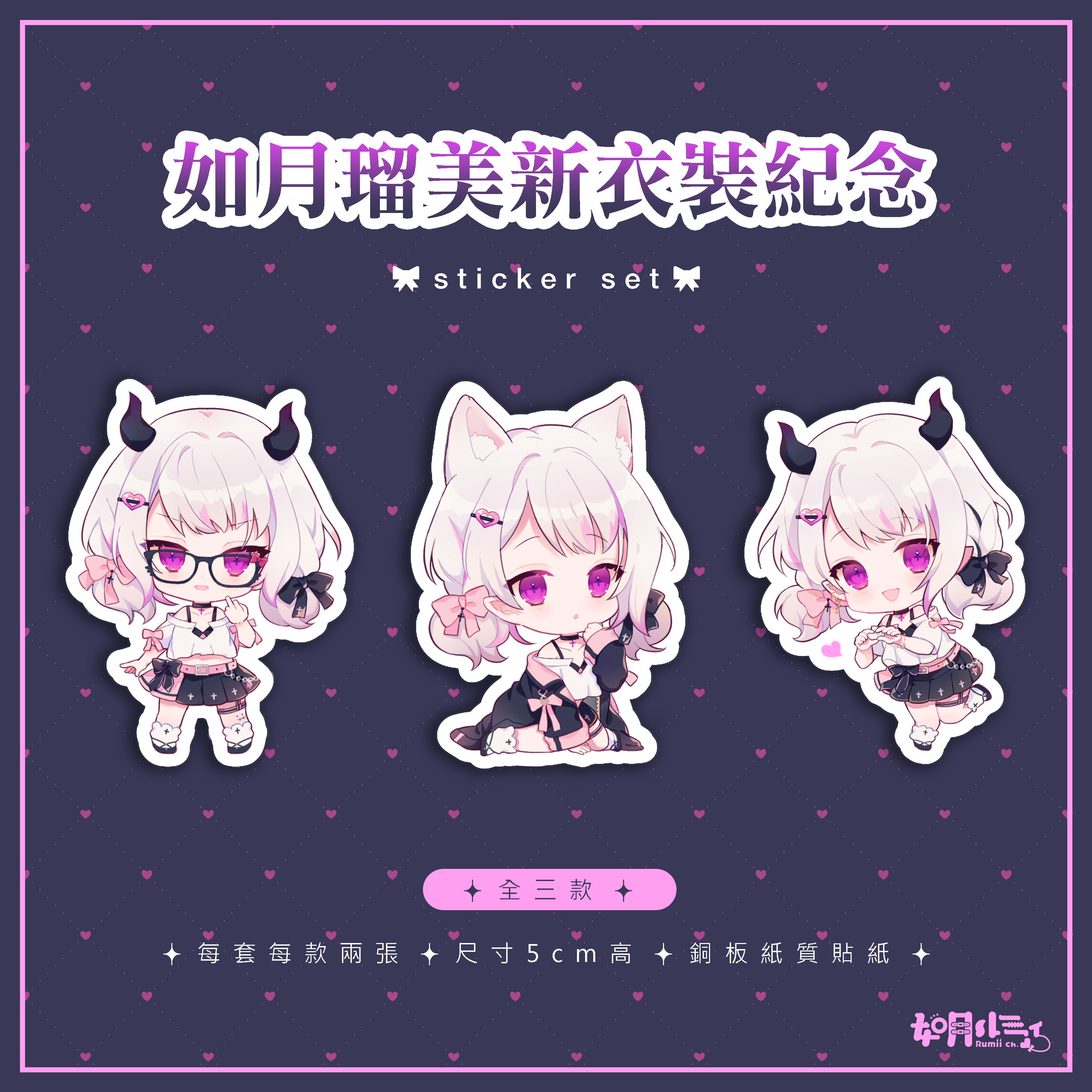 每套每款兩張|銅板紙質貼紙|5cm高