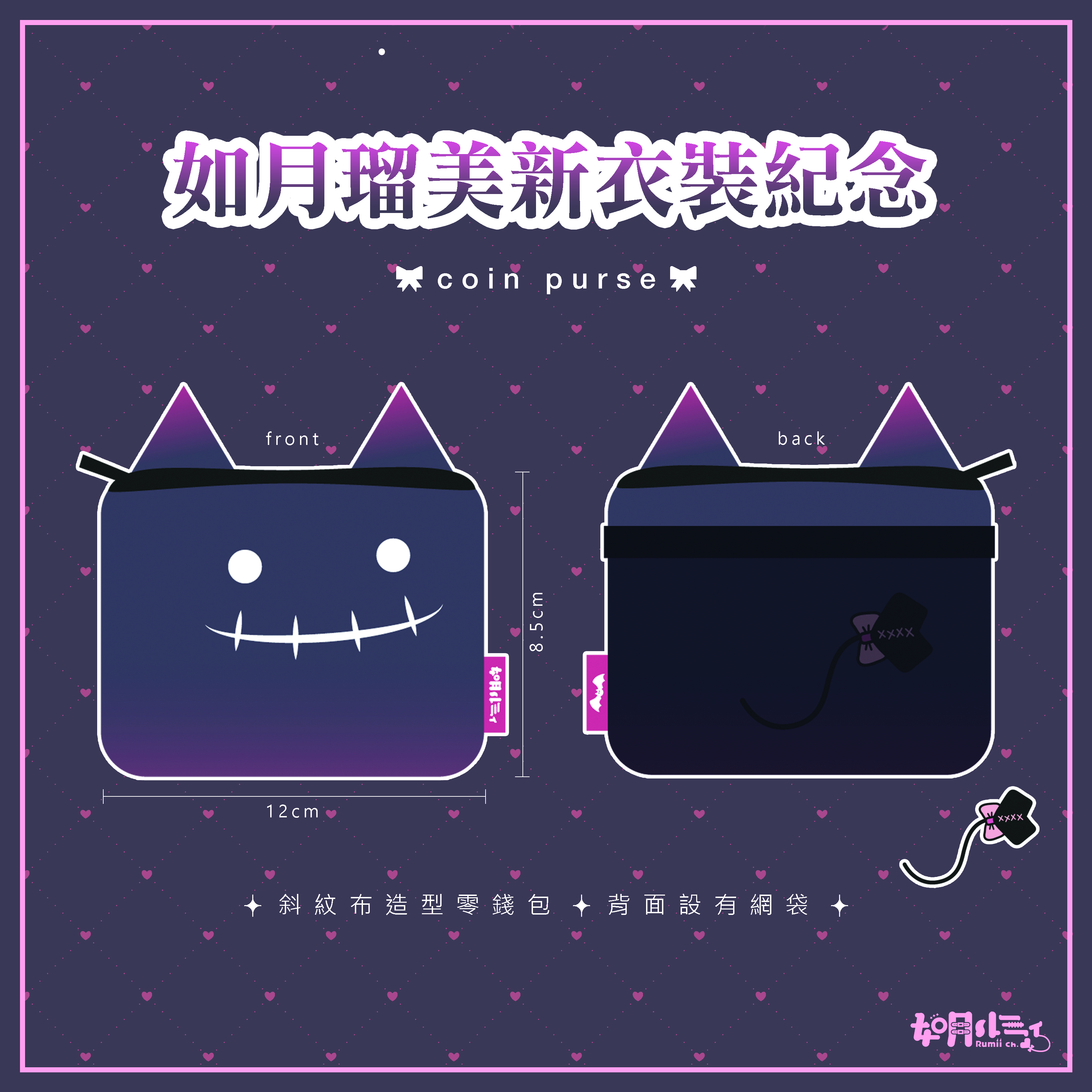 斜紋布惡魔造型零錢包|背面設有網袋