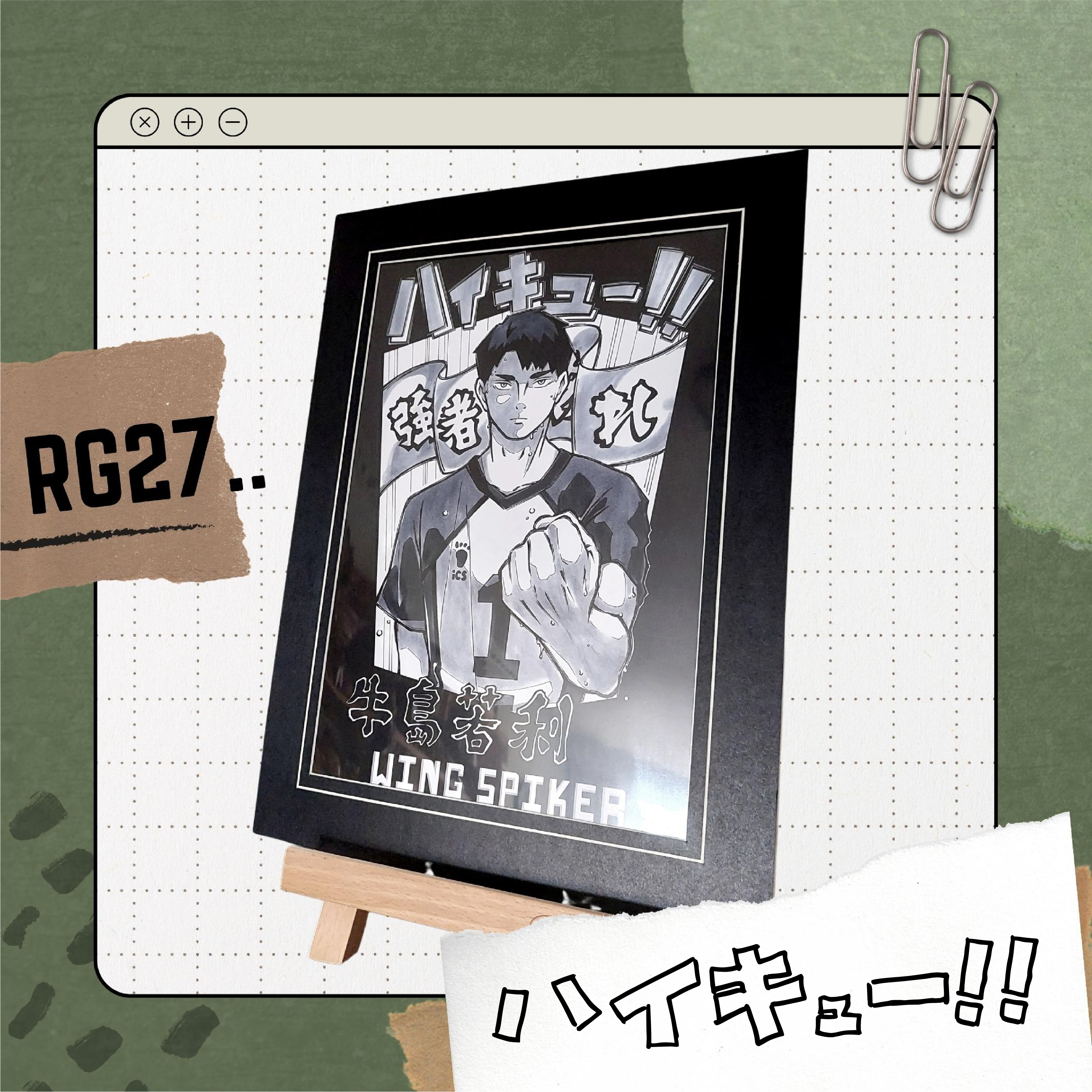 手繪原稿印刷的硬卡角色卡,尺寸為 A4,單面印刷