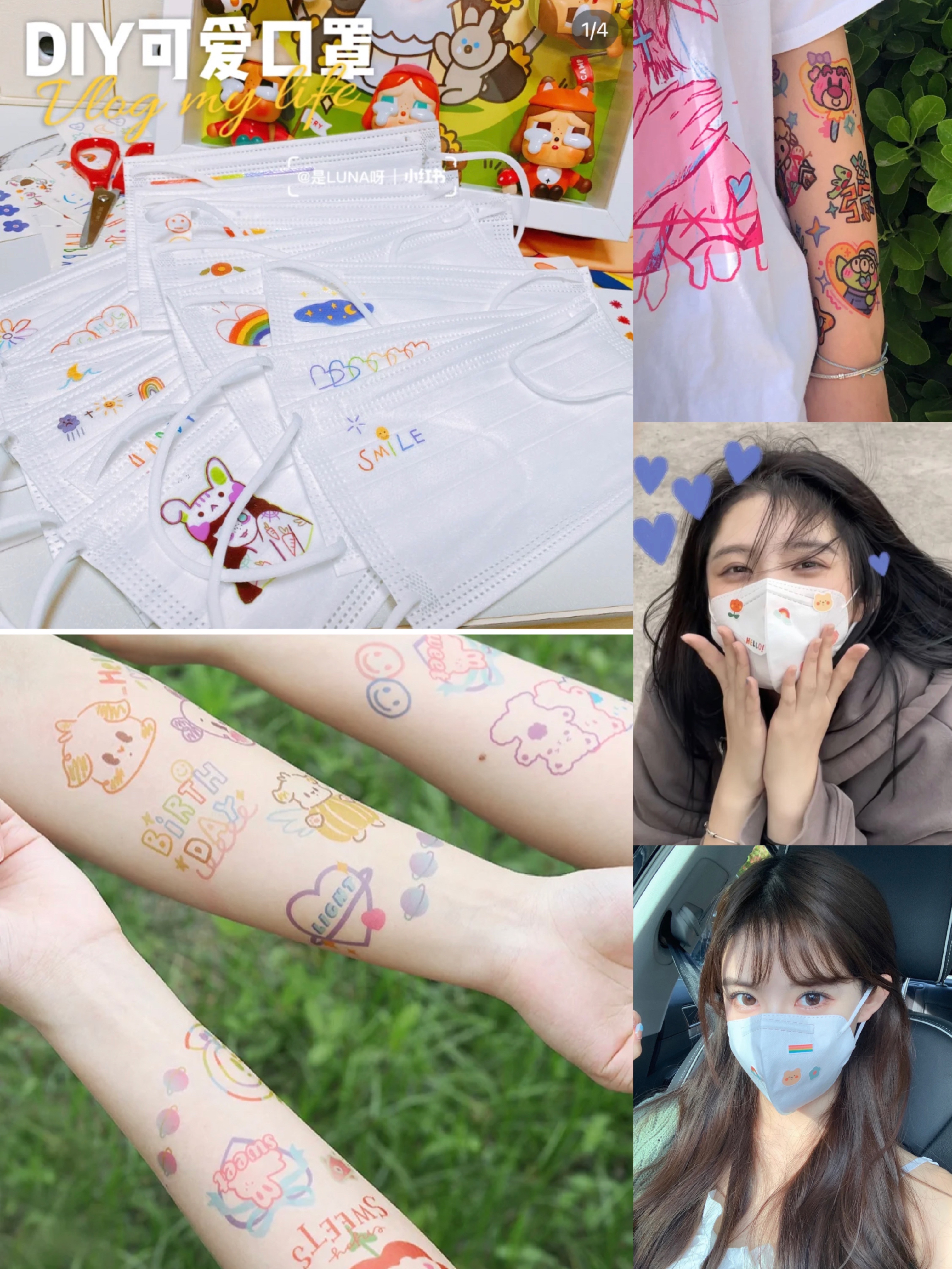 2:將喜歡圖案剪下,撕開透明一面,貼口罩上/身上