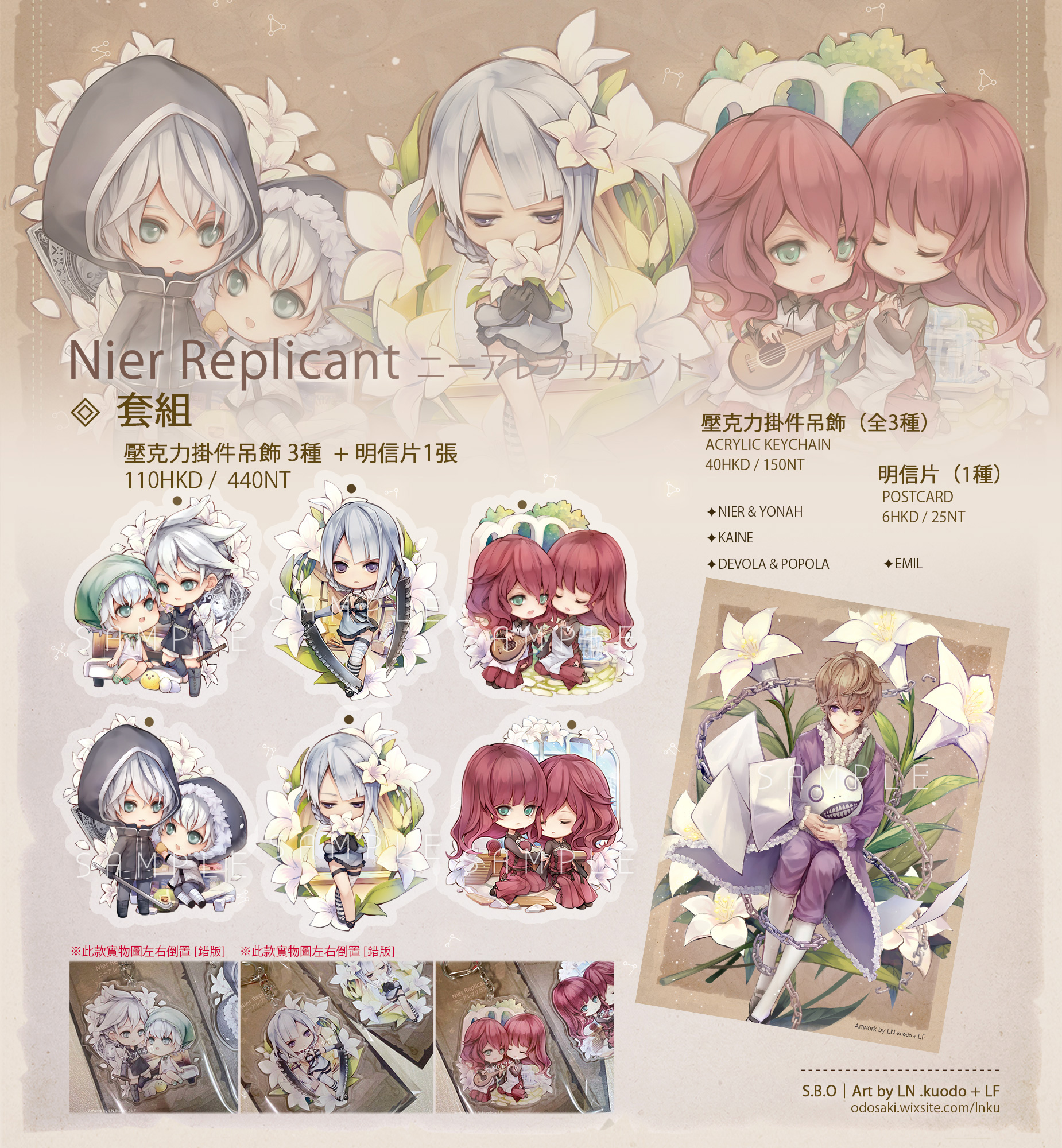 NIER & YONAH、和KAINE的吊飾實物圖樣 左右倒置,請注意喔\( ;꒳; )/