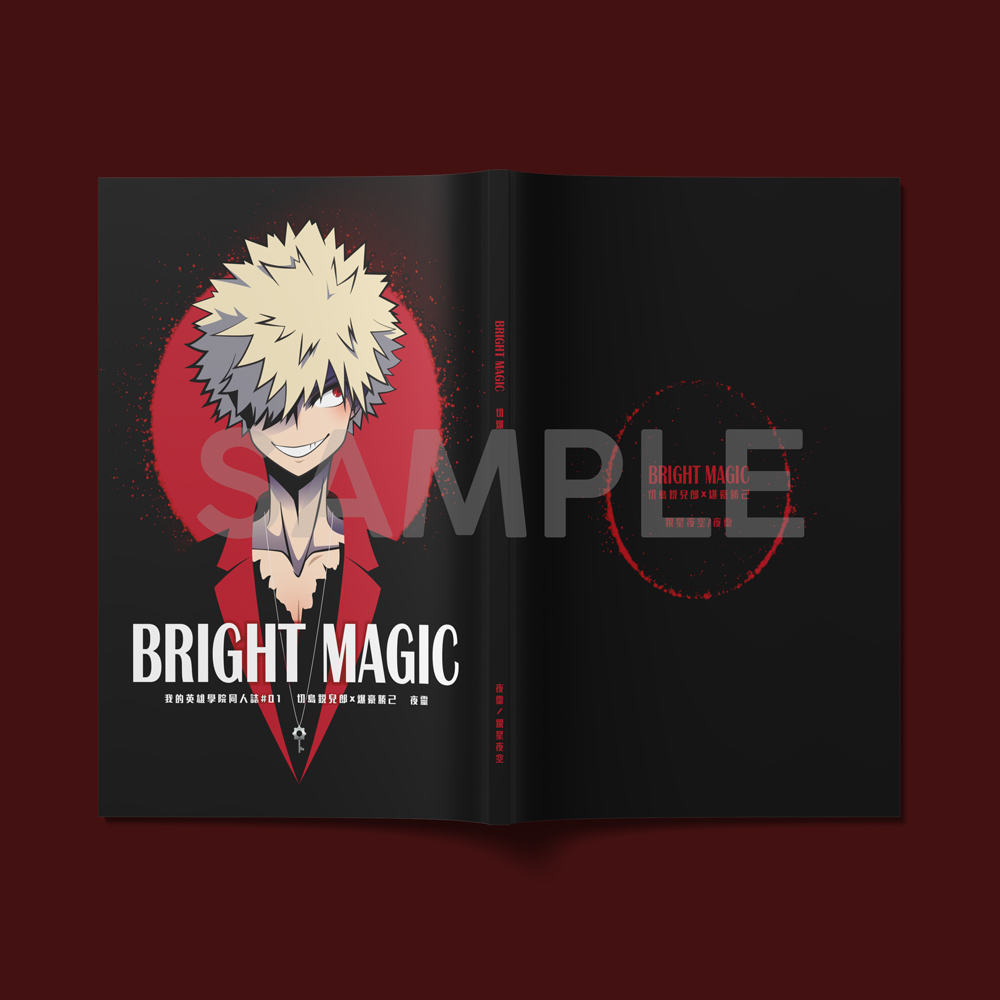 刊物資料:▽ 書名:《BRIGHT MAGIC》▽ 作者:夜靈▽ 出版:銀星夜空▽ 原作:我的英雄學院▽ CP:切爆▽ 字數:4萬字▽ 規格:B6右翻/128頁▽ 場販價格:250NTD/55HKD