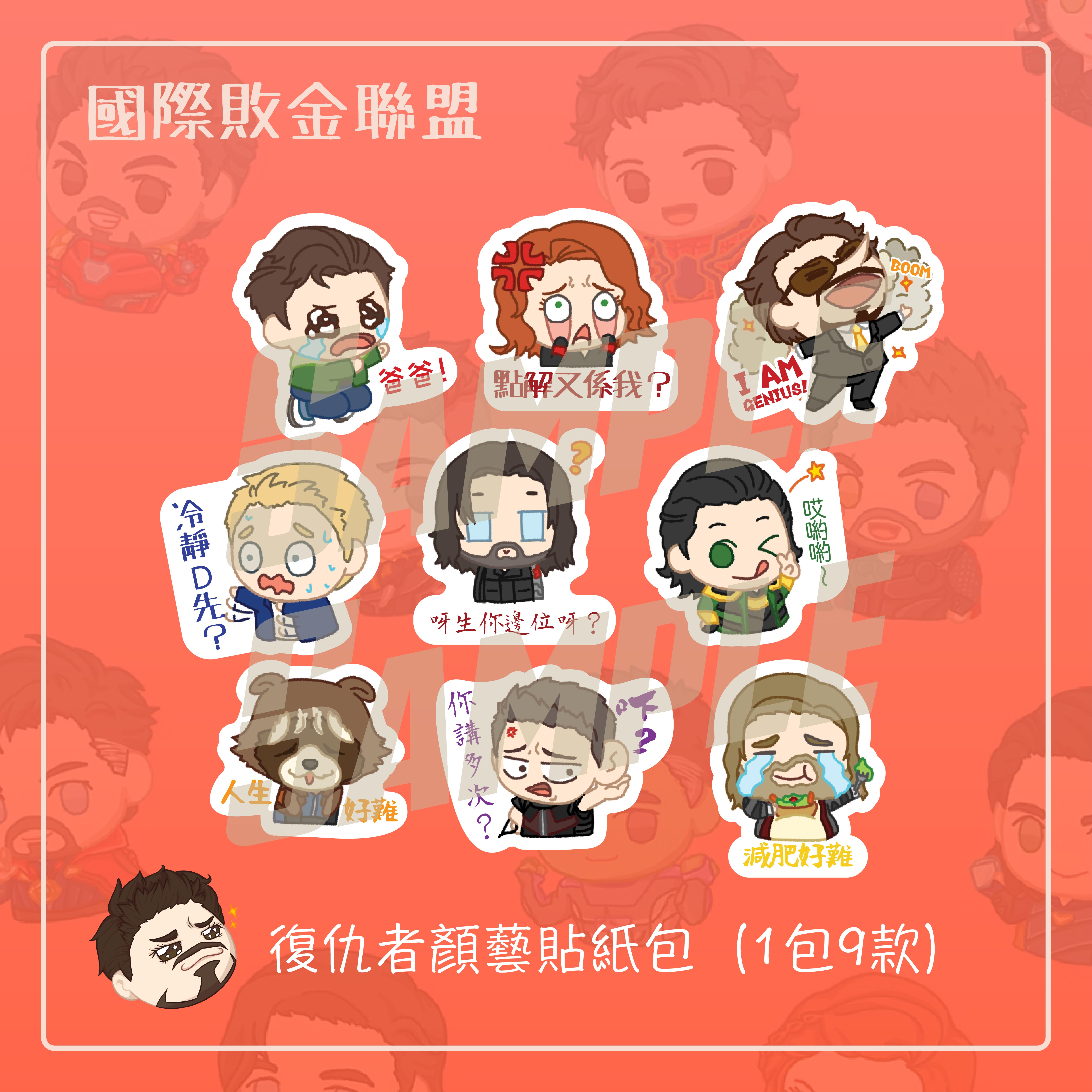 復仇者顏藝貼紙包(1包9款)