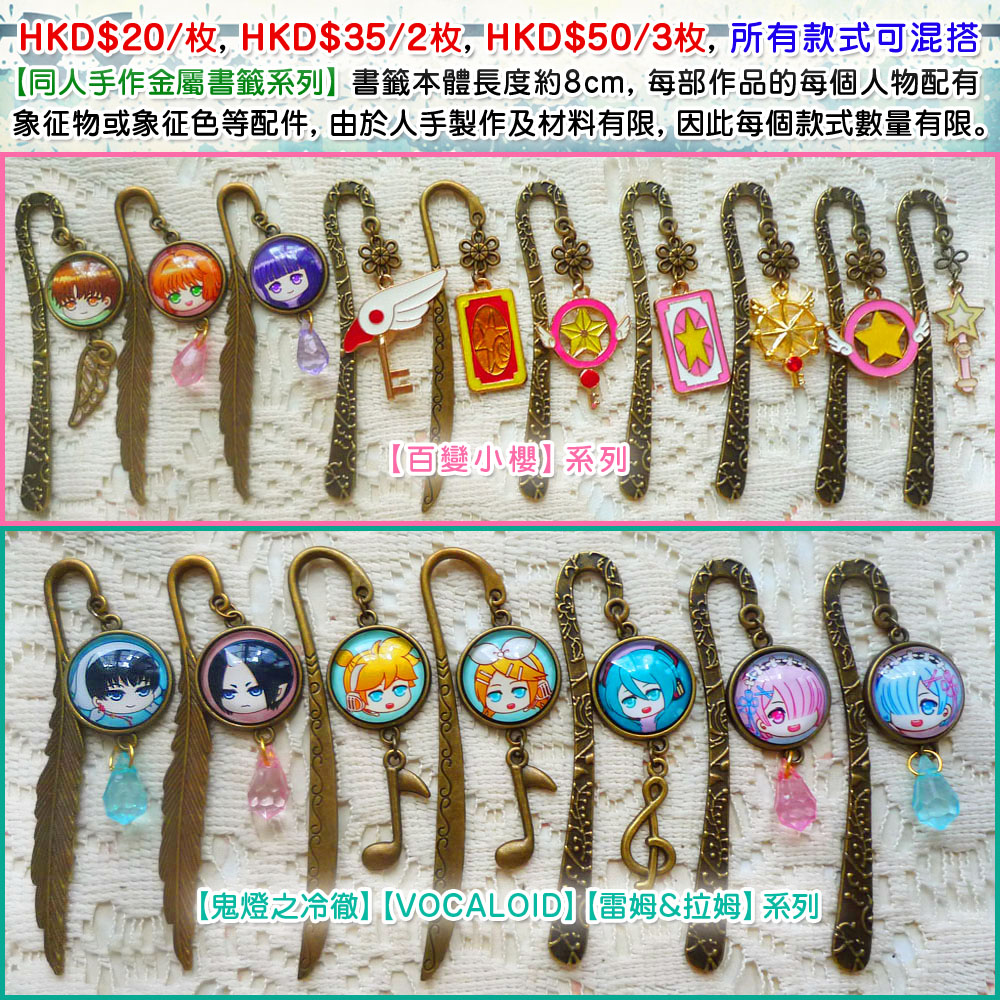 【百變小櫻、VOCALOID、雷姆&拉姆、鬼燈之冷徹】系列【同人手作金屬書籤系列】