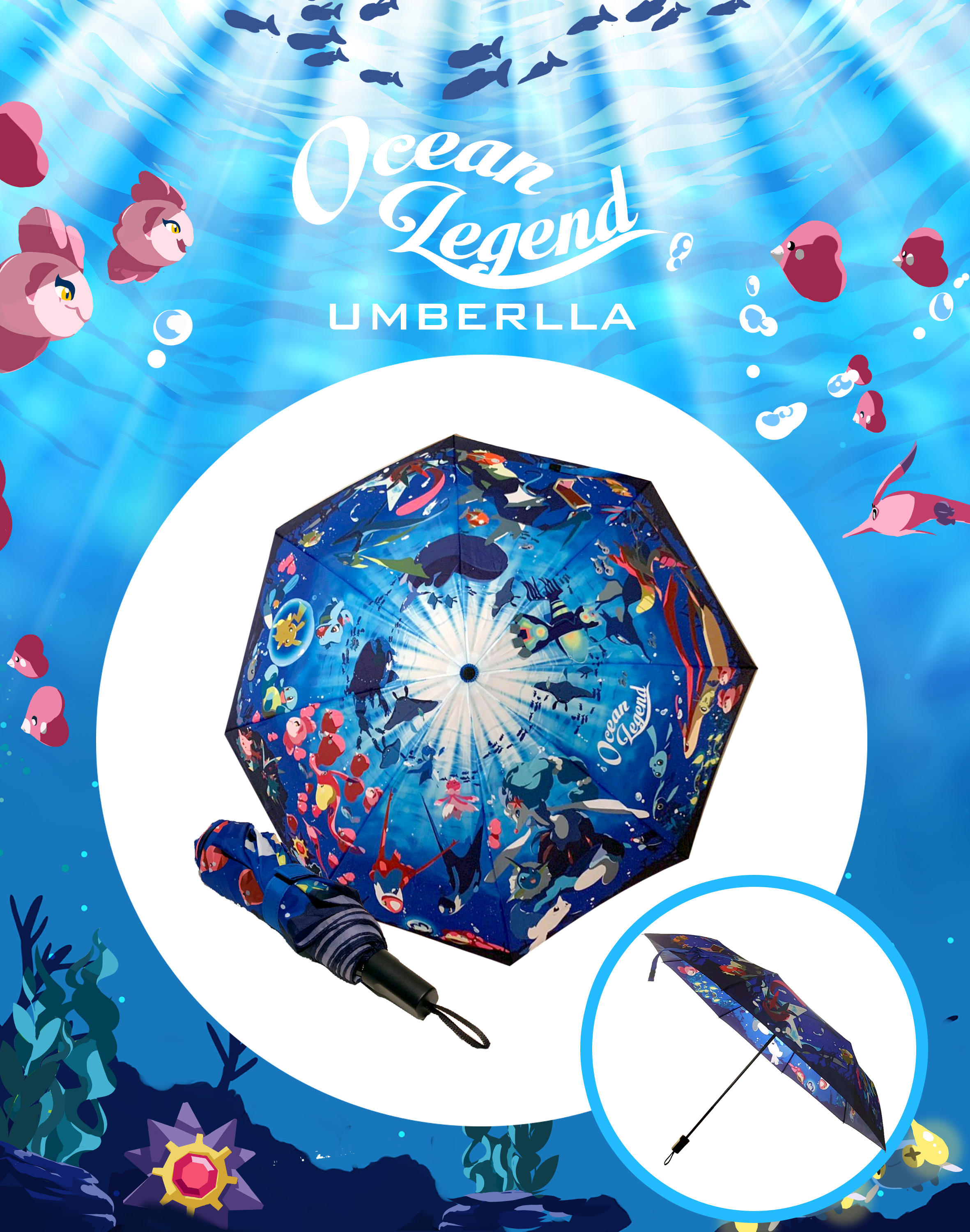 以海洋Pokemon為主題創作的同人雨傘作品