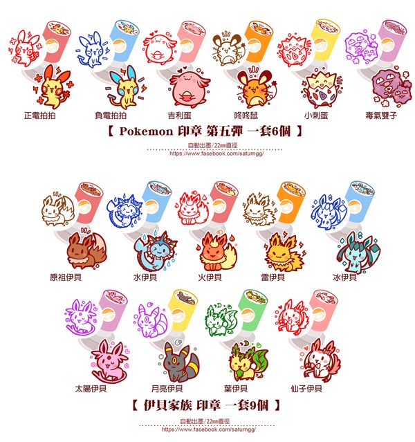 Pokemon 印章 第五彈 一套6個+伊貝家族 印章 一套9個