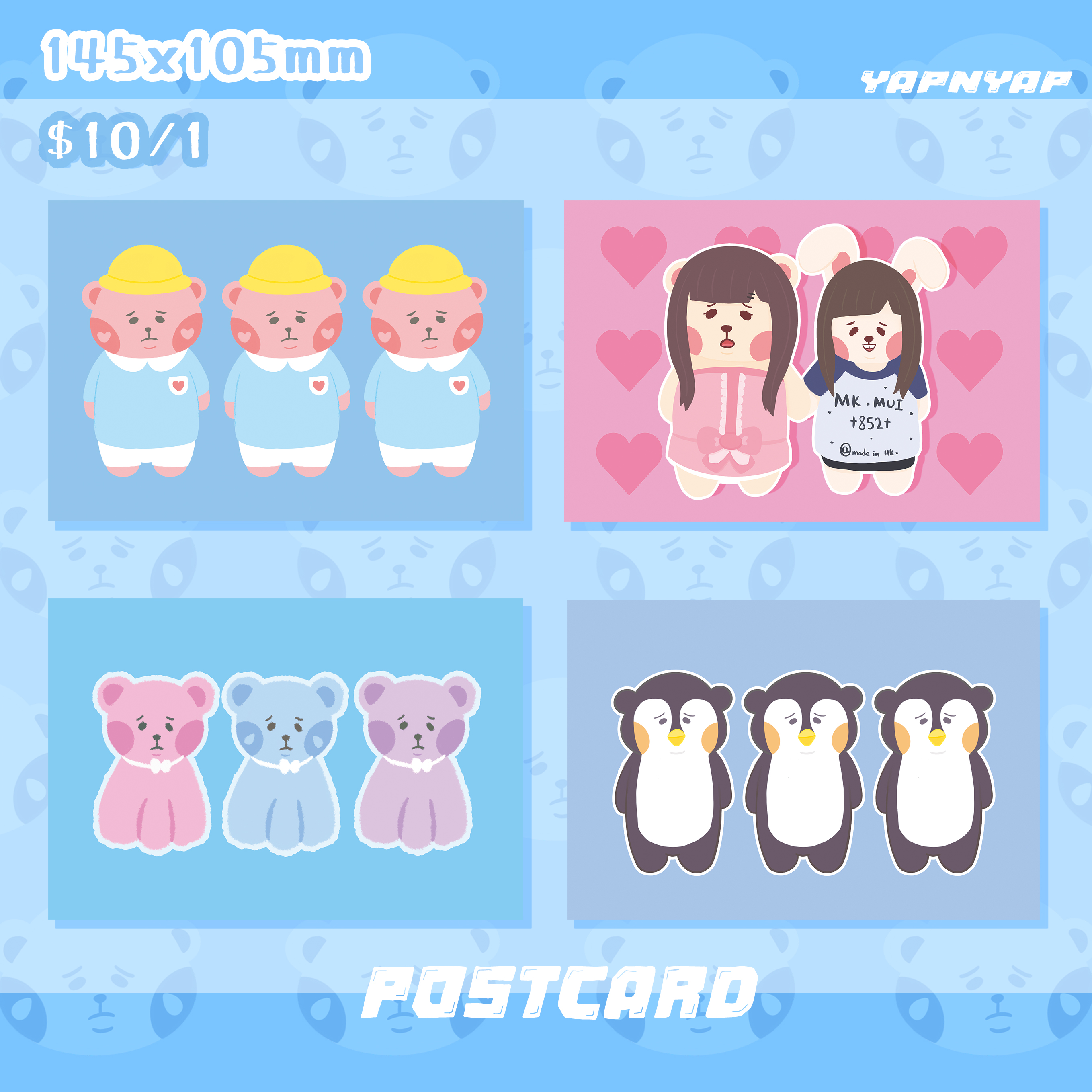 SIZE:約 14.5x10.2CM材質: 銅版紙材質款式:幼稚園小熊|晴天娃娃小熊|企鵝小熊|熊熊壞過凱婷